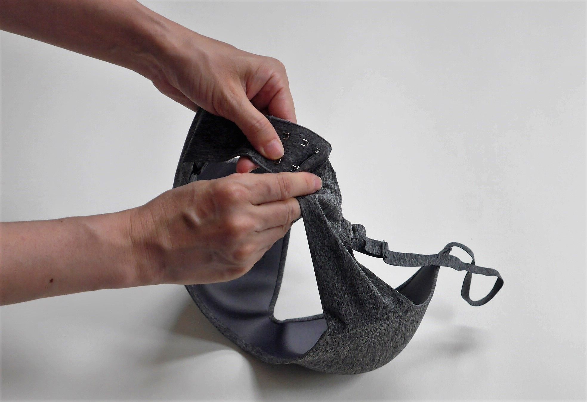 3:ブラジャーの中央で二つ折りにして、片側のカップに寄せます。