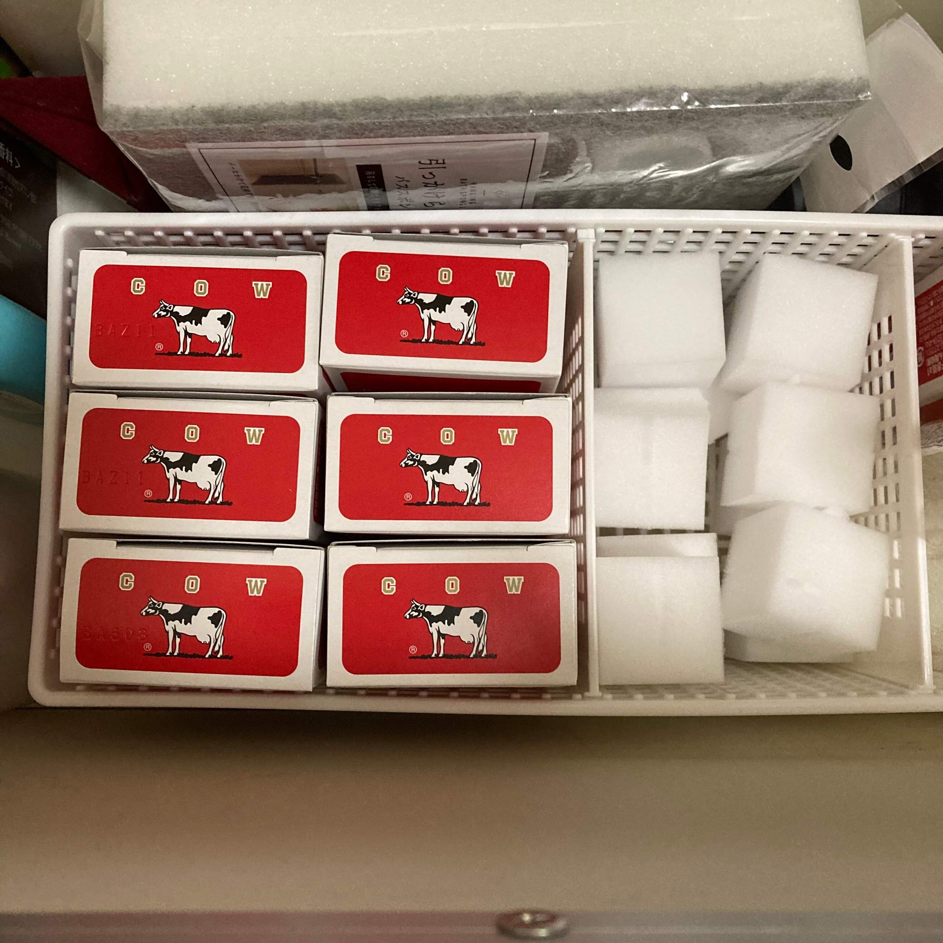 真っ白な収納グッズで中身を見えなくすると、