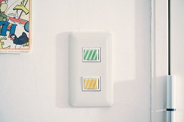 「掃除の手間を省くなら、〝予防掃除〞も大事です」。手あかがつくスイッチプレートに貼