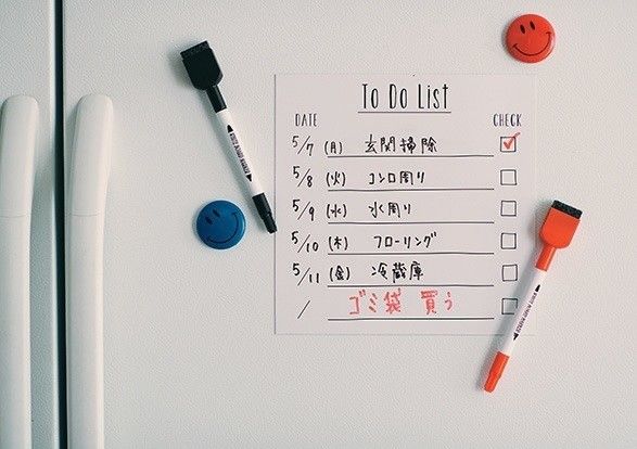 やるべき家事はチェックリストにすると達成感アップ。「コンロは火曜日に掃除するから今日は気にしない、と楽観的にもなれますよ」