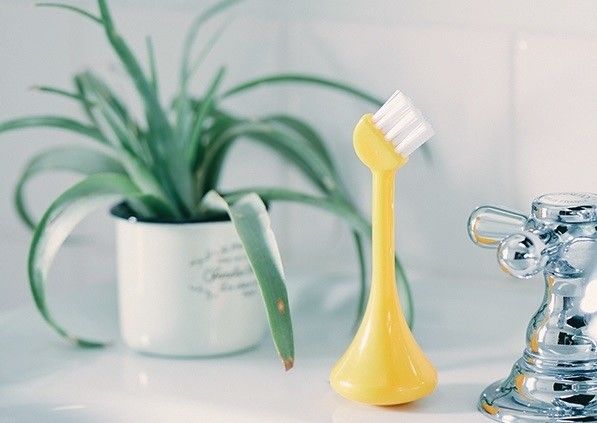 「気づいたらサッと道具を手に取れる環境が、掃除のハードルを下げます」。出したままでもかわいいブラシで、洗面所をいつも清潔に