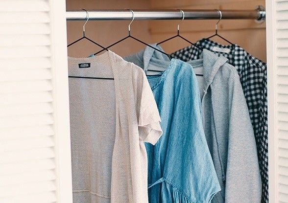 クローゼットがパンパンな人は、ハンガーを見直して。「細いハンガーでそろえるとつるす収納量を増やせます。たたむ手間も軽減!」