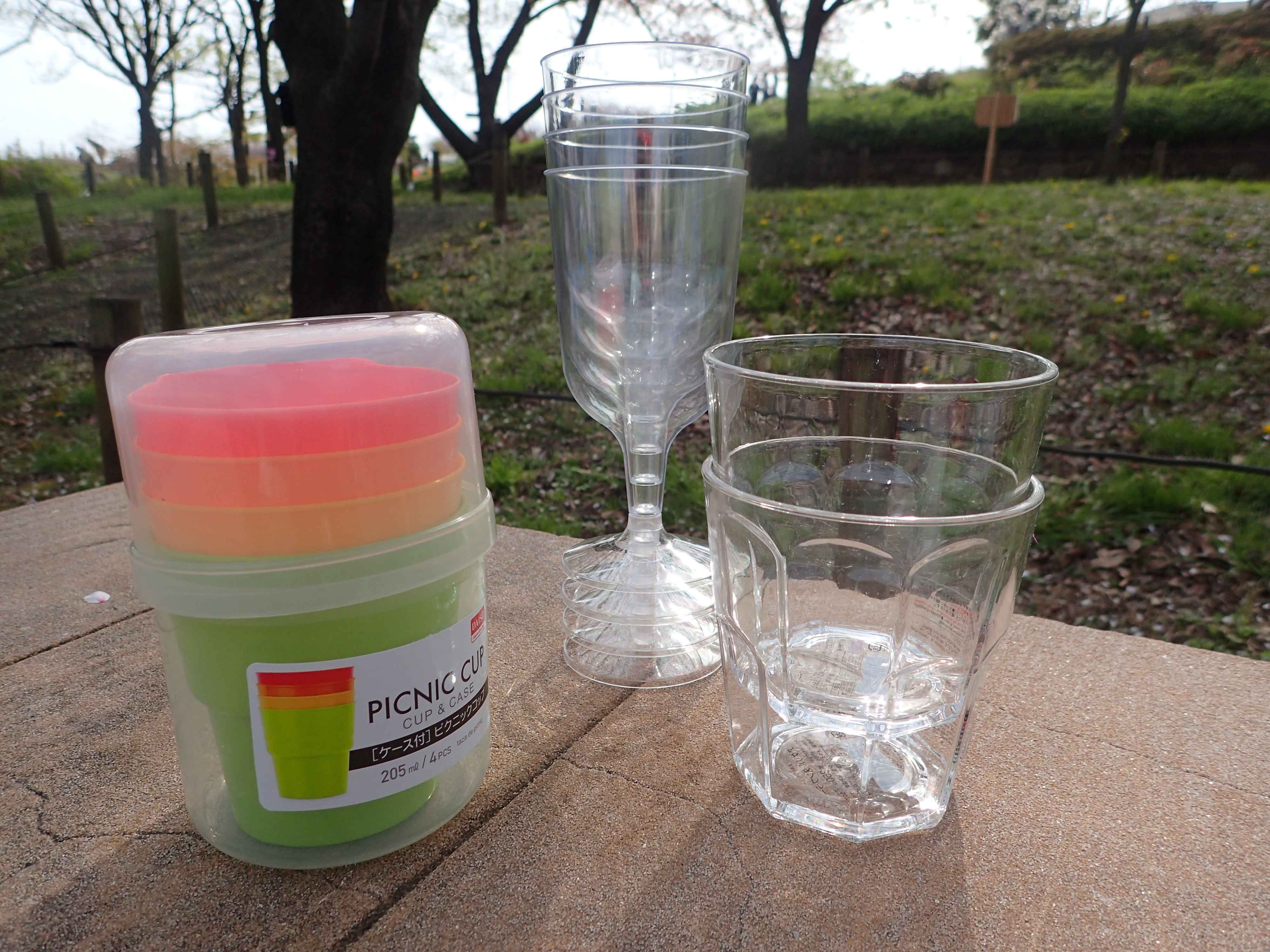 コップ類はかさばるので、スタッキングできるものがおすすめ。パーティー用のケース付きスタッキングコップセットや、ガラスのようなプラコップ、ワイングラスなどもあり、雰囲気を盛り上げる小道具として役立ちます。ただし、プラ製品はアルコールに弱いので、アルコール飲み物には使用しないようにしましょう。