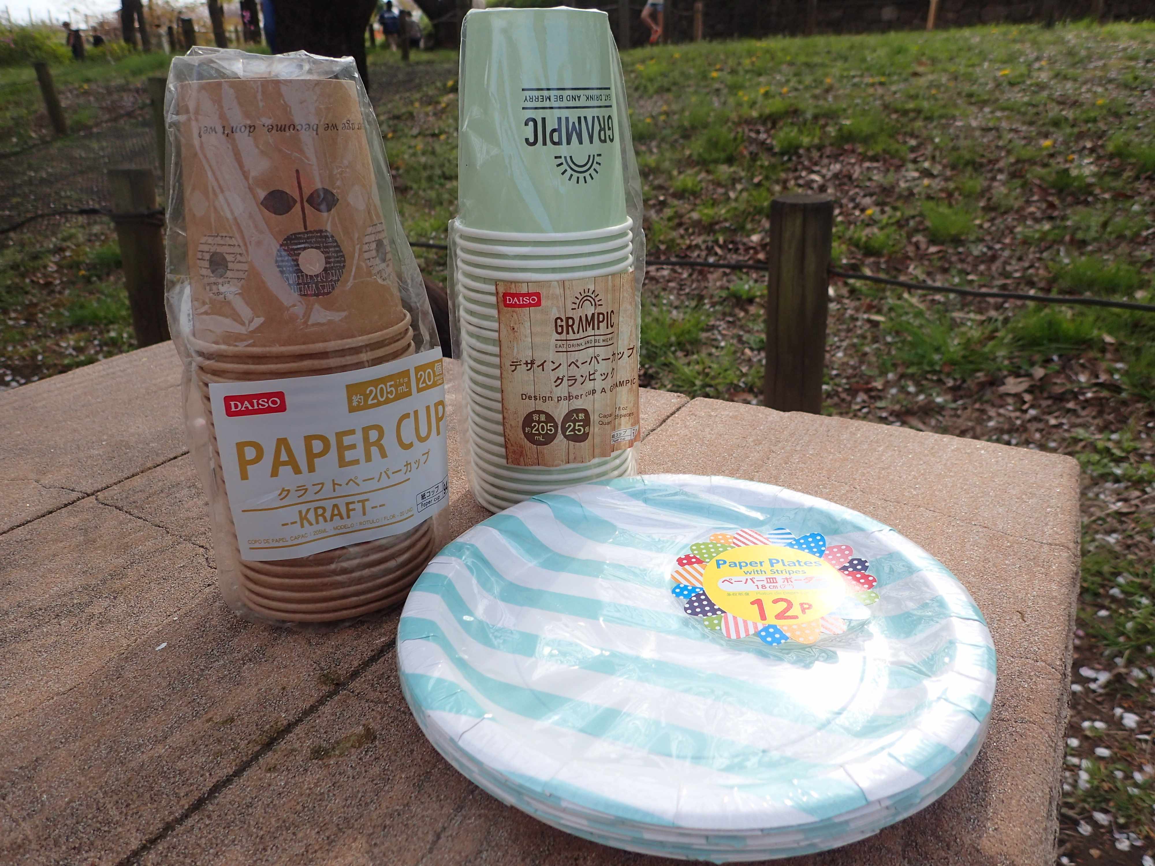 手軽に用意できる食器といえば、紙製品。紙皿や紙コップは、風が吹くとすぐに飛ばされてしまうので、アウトドアには不向きですが、かわいい絵柄のものがたくさんあるので、テーブルを華やかに演出できます。筆者はなるべく使い捨てない食器を使いたいので、あとで洗うのが大変な油料理などを中心に、紙皿が活躍します。