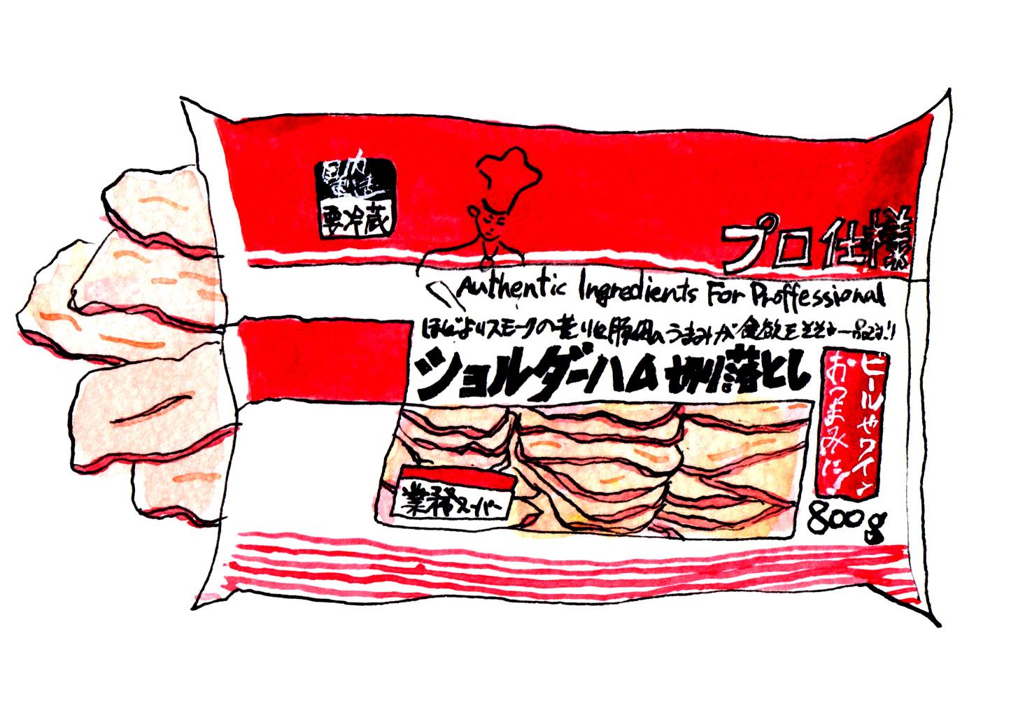 800g861円、大容量高コスパの代表格は「ショルダーハム切り落とし」。軽くスモークしてある濃厚な味で、オムレツやスープ、炒め物などに少し使えば旨味アップ! わざわざお肉を投入しなくてOKです。実は、業務スーパーの隠れたロングセラー商品。この「使える度」なら、納得です。