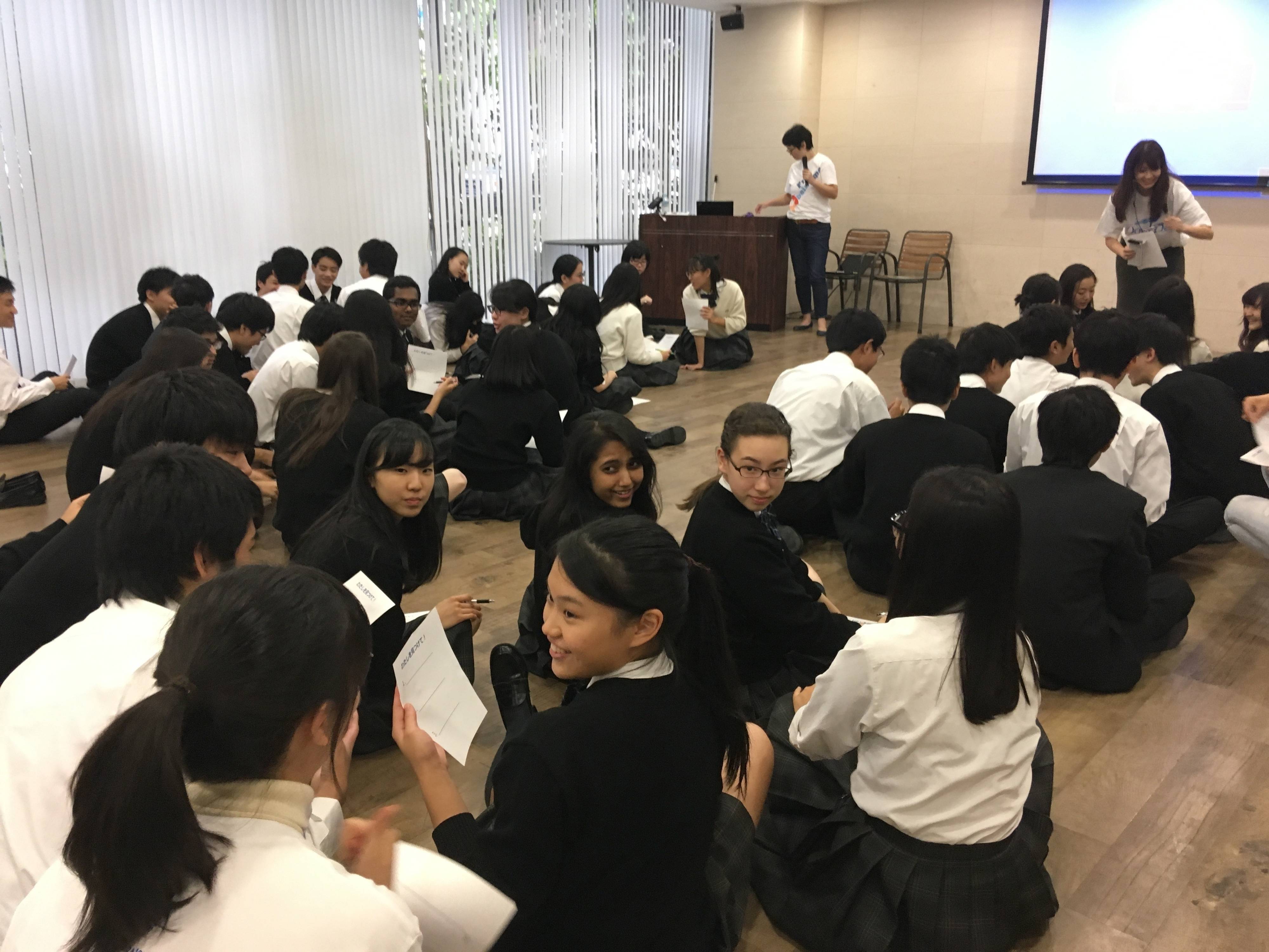 これから何がはじまるのかと、集まった生徒たちの期待が高まるなか、最初のプログラムがスタート。まず、自分の見た目や性格などの特徴を無記名で3つ書き、それを全員でシャッフル。だれのものかわからない状態で、手渡されたメモの特徴を元にその人を当てるというもの。