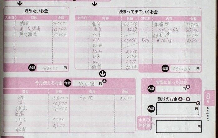 今まで、費目別などに細かく記入する家計簿はことごとく挫折。『サンキュ!』の『みるみる貯まる!カンタン家計ノート』を使ってみたら、表のとおりに記入するだけで、毎月やりくりする予算が明確に。「このやりくり予算の中で収めればいいから、細かく費目分けする必要もなく、気がラクになりました」(山口さん)