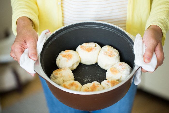 パン屋めぐりや夫との外呑みが趣味だった山口さん。「好きなものは我慢したくないから、家で再現してみました」。パン作りは、オーブンなしで、鍋で焼き上げるだけだから、初心者でもカンタン! 週末は夫が喜ぶガッツリ肉の居酒屋風メニューにするなど、実践してみたら外食と同じくらい楽しめて、食費もガツンと減らせました。