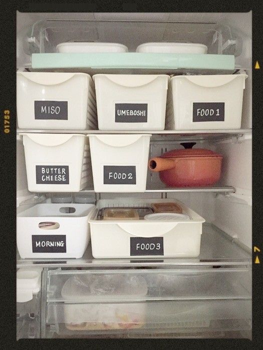 また、冷蔵庫の中で食材を腐らせてしまう理由の1つに、手前の食材に隠れてしまって、奥の食材が目に入らなくなってしまうことが挙げられます。奥行きのある冷蔵庫を整理整頓するには、上記画像のように、100円ショップなどの収納ケースを引き出しのように使うことで、見えない食材を減らすことができます。