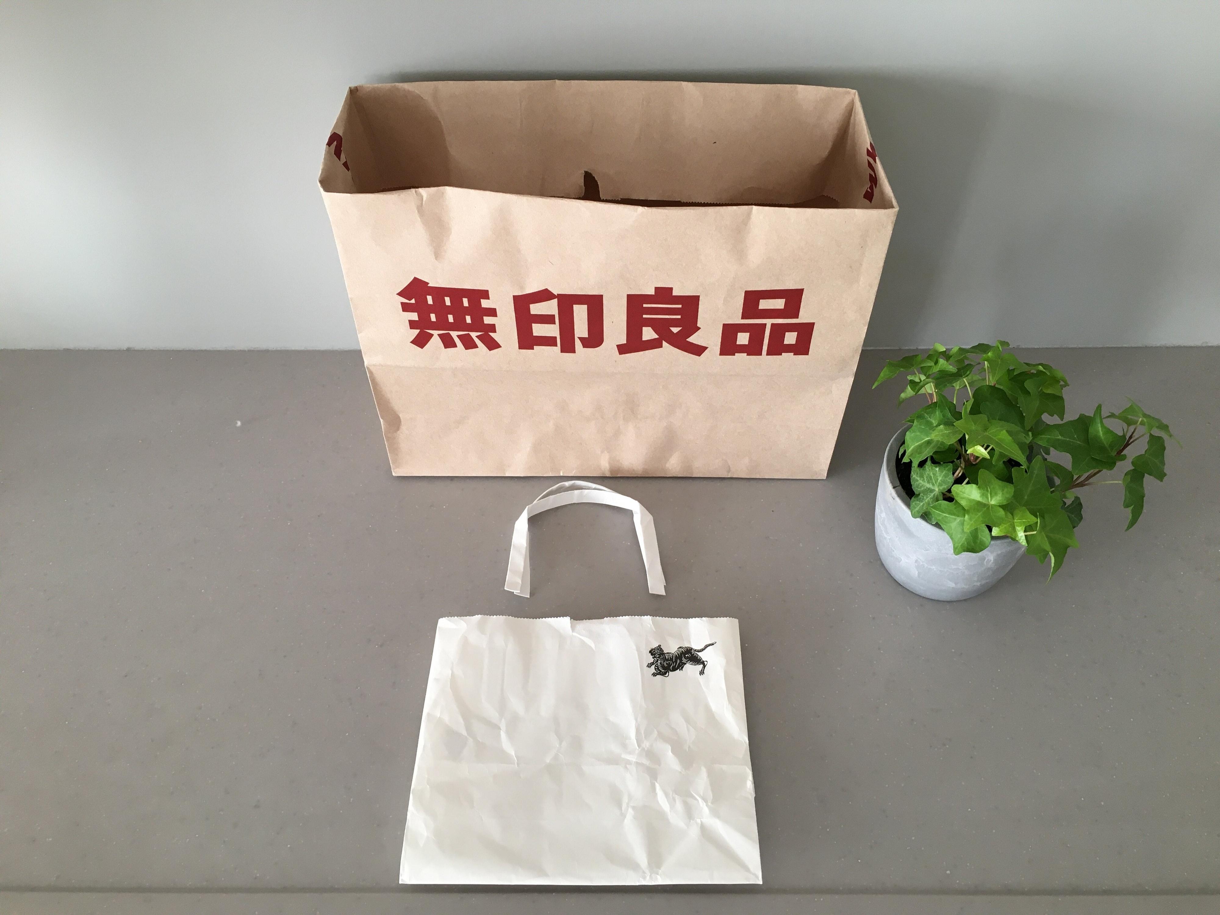 収納をすっきり見せるコツは、できるだけシンプルな紙袋を選ぶことです。白がベースの紙袋や再生紙素材の紙袋で統一すると、収納がきれいに見えます。