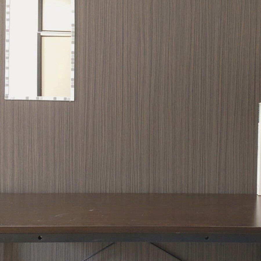 壁面に白木の柄のリメークシートを貼り、イメチェンをしてみました。