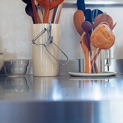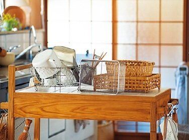服も本も減らしたけれど、台所道具は料理のモチベーションになるから制限しないことに。特に水切りかごは4つあり「今日はこれ」と気分で使い分けるほど。「収納にも使えるからと言い訳しています(笑)」。