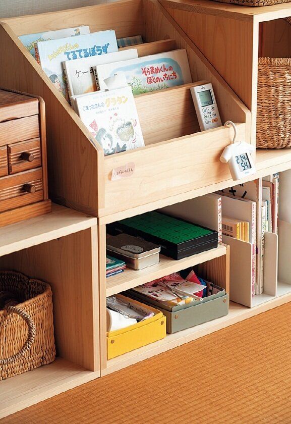 蓋をするとどこに何をしまえばいいか迷うし、上部に空間がないと箱をいちいち引き出さなければおもちゃがしまえません。収納のストレスを徹底して取り除けば、子どもでもポンポン片づけができるように!
