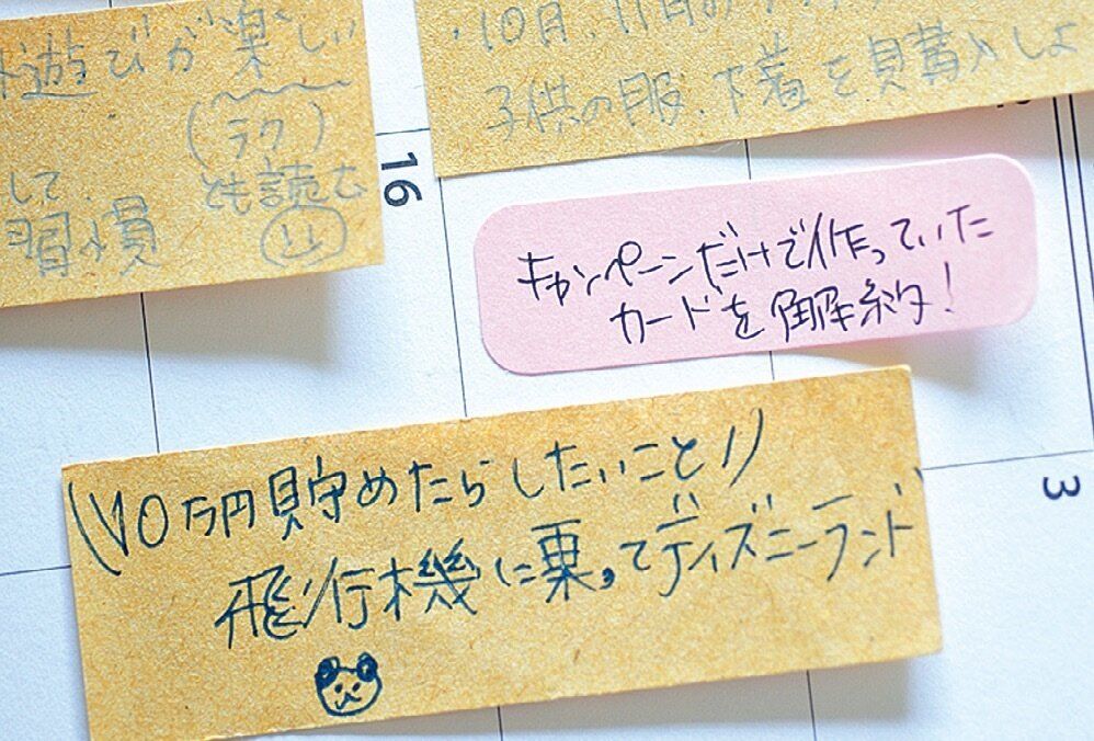 3年前、『サンキュ!』の「年末までに10万円チャレンジ」に挑戦。「無計画では貯まらない」と思い、やりたいことをノートに書き出しました。家族がワクワクする目標を明確にしたら、みんなが協力的になり、4カ月で17万円を達成!それを機に毎年目標リストを作成。貯蓄も安定しました。