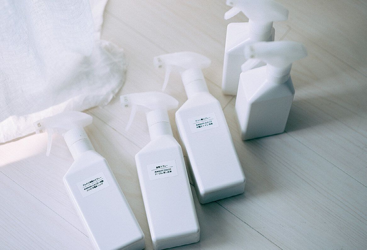 材料を1つ買い、家でよく使う洗剤を量産すればコスパ抜群。ボトルをそろえると、スッキリ収納できて◎。(なべあつこ)