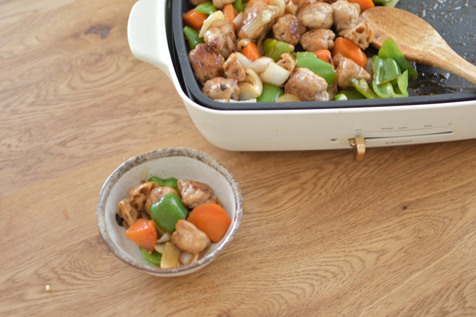 お出かけをしたあとや疲れた日、週末のご飯はホットプレートに頼ります。冷凍ご飯がある日は、焼きめしやオムライス。お肉と野菜があれば鉄板焼きも楽しめます。