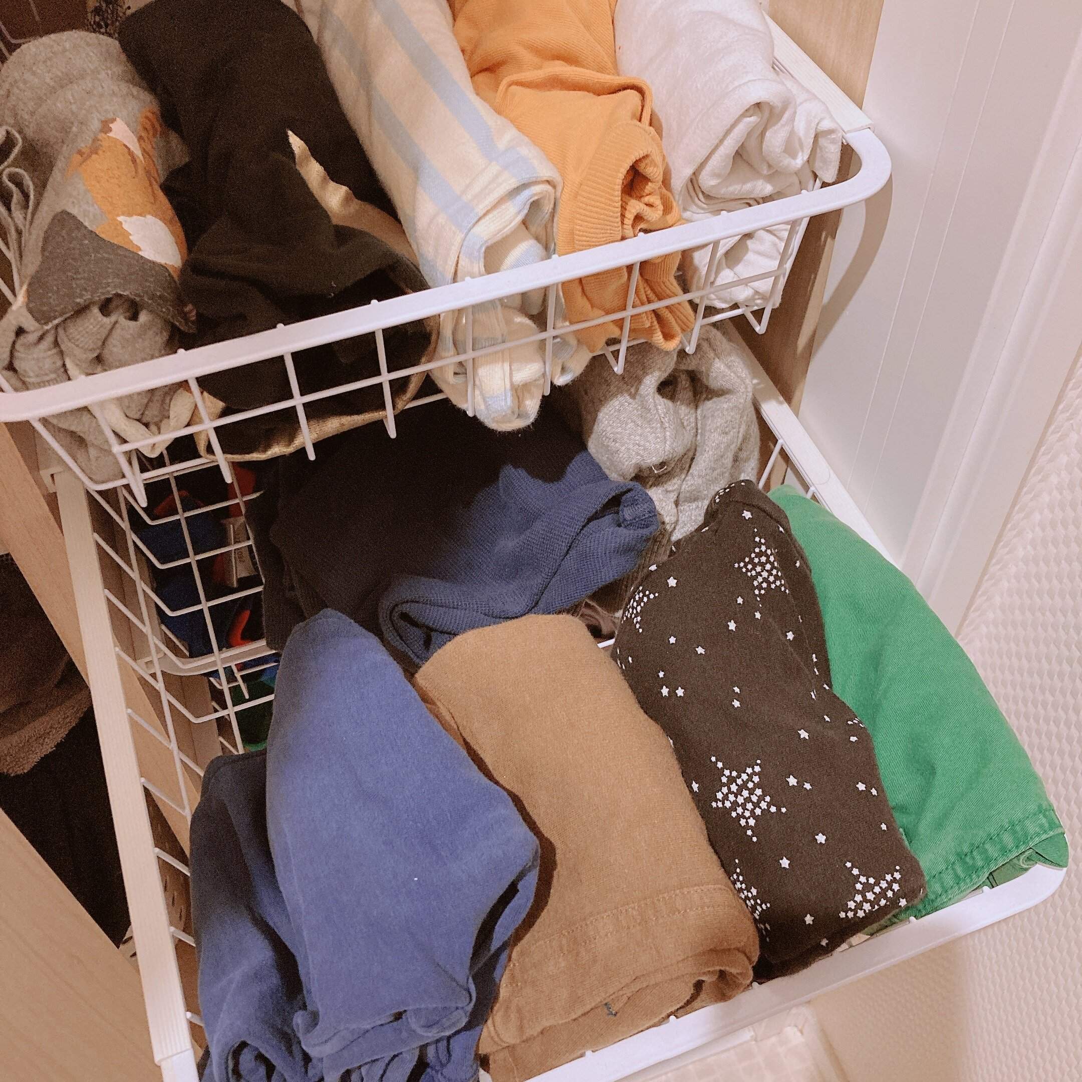 簡単に開け閉めできるようにしておけば子どもも自分で着替えをしやすくなります。子どもが気に入っているトップス、ボトムス、各5枚ずつぐらい入っていれば十分ではないでしょうか。