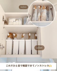 食費節約上手さんは、調味料、パスタなどの乾麺、トマト缶やツナ缶などの缶詰、高野豆腐などの乾物……などの常備食材の種類とストック数を決めています。調味料は今使っているものがなくなりそうになってから買うのが基本。余分なストックは持ちません。