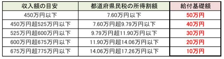 ※ 現金取得者の収入額(目安)の上限650万円に相当する所得割額は13.30万円です。
