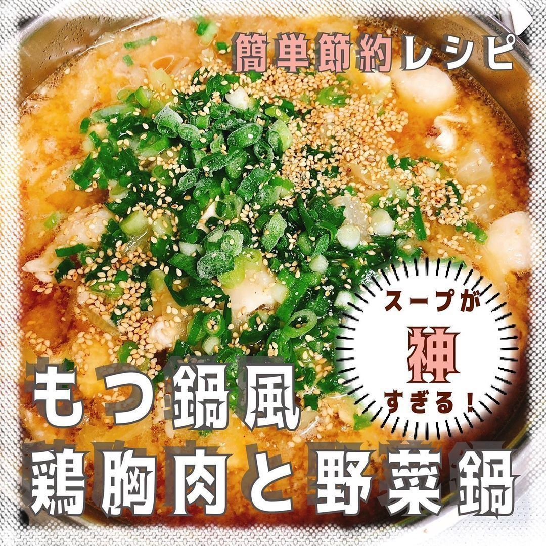 mayu.kakei_28さんは食材費をおさえてつくれる鍋を夜ご飯に食べました。鶏胸肉を下処理して火を通しすぎないようにすることで、しっとりとやわらかくなるのだそう。スープの隠し味には業務スーパーで購入できる姜葱醬(ジャンツオンジャン)を使いました。