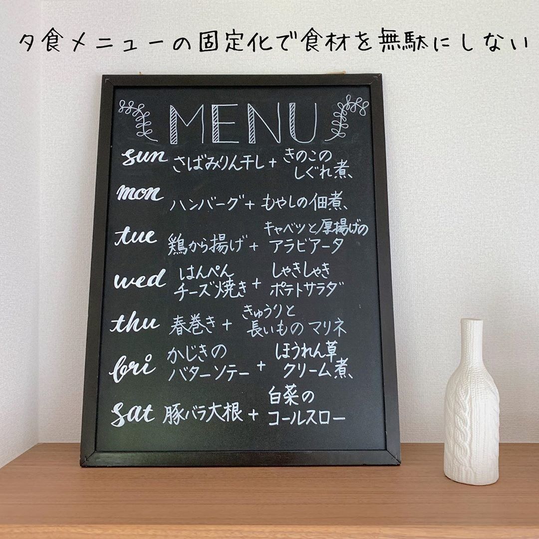 thishouse_htさんは、夕食メニューを固定化して食材の無駄を防いでいます。週に1度買い物リストを持って買い出しに行き、購入後はすぐに切って味つけをして冷凍保存。35日分のメニューを事前に決めているので、食品を使い切れないという悩みもないのだそう。