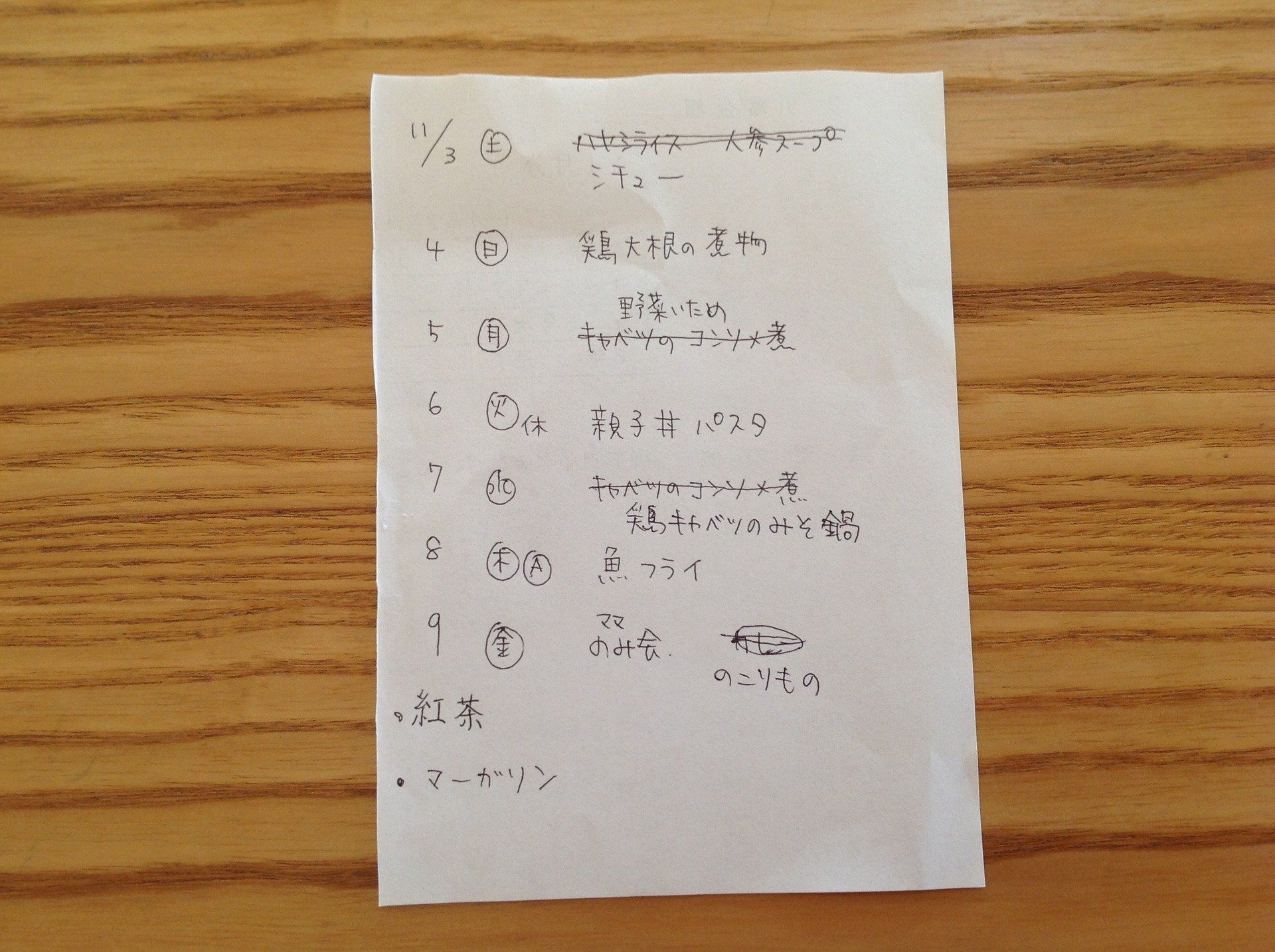 残りものを見ながら1週間分の献立をゆるく立てる
