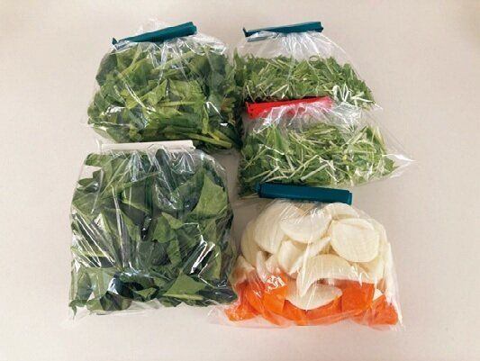 献立を決めておけば、すぐに使わない肉を冷凍したり、野菜の切りおきを時間のあるときに進められて効率的。夕食作りの時短にも!