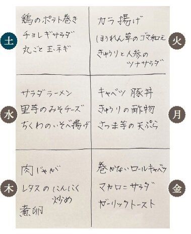 かーさん式1週間献立メモ