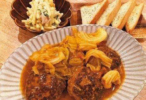巻くのが面倒なロールキャベツは、キャベツを巻かずに煮込むだけ(笑)。パンをソースにつけると美味。