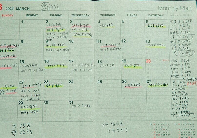 - スケジュール帳に支出額をメモするだけ。使いすぎ予防に