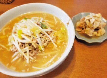 この週の麺料理は、子どものリクエストでラーメンに。副菜は冷凍しておいた作り置きおかずを出すだけ。