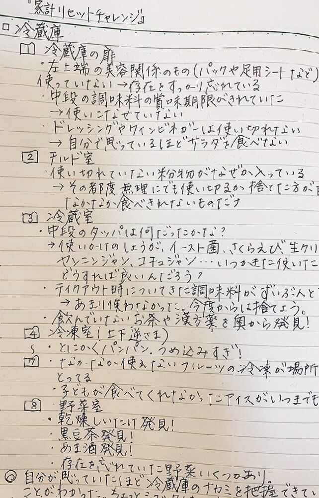 買い物中にいるかいらないか迷ったら、メモと写真を確認。すると「これを先に使おう」と、必要のない買い物をセーブできるように。冷蔵庫の中もスッキリしてきました♪