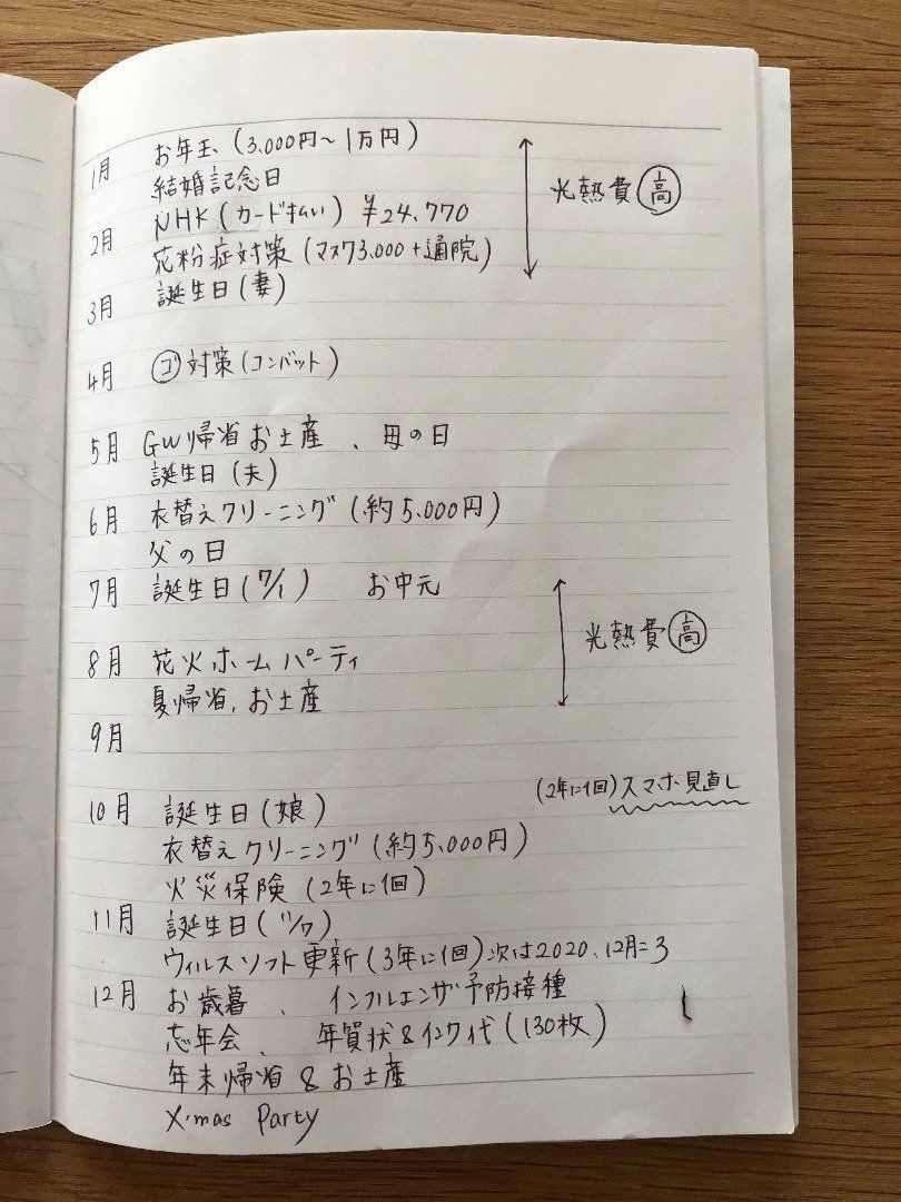 予想支出を書きだして月予算の一部を特別出費にあてる
