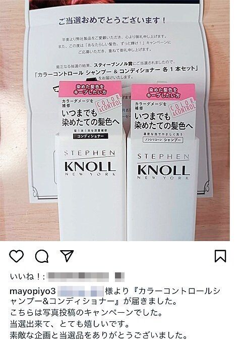 - インスタグラムで、当選品の感想をアピール