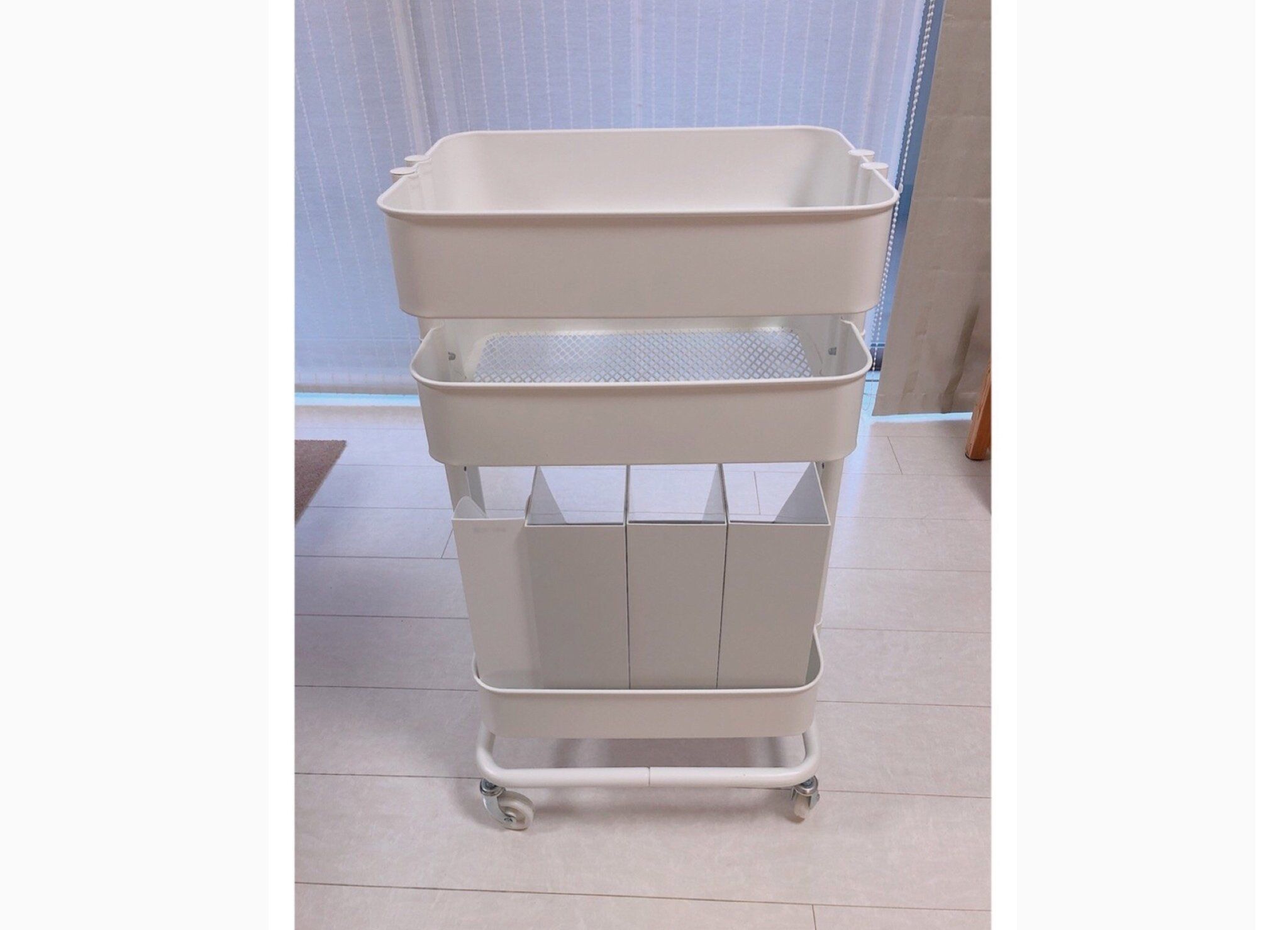 ある程度の量があるなら、ワゴンやキャスター付きのボックスなどを使って定位置とするのもいいですね。