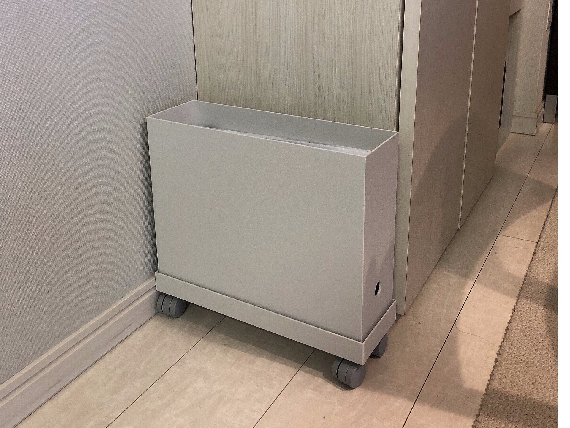 わが家では無印良品のファイルボックスにキャスターをつけたものや、同じく無印良品のジュートバッグ(中に100均の紙製ファイルボックスをいれています)などを一時置きとして使っています。
