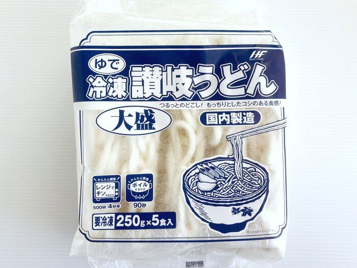 サンキュ!STYLEライターHarunaさんがおすすめするのは、業務スーパーの冷凍うどん。250g×5食入りで188円と激安価格で、男性でもおなかいっぱいになるほどのボリュームなのだとか。電子レンジでも解凍できるため調理も簡単で、節約だけでなく家事を楽したい日にも貢献するといいます。