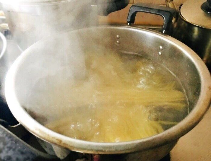 サンキュ!STYLEライターママーリオさんは、台所洗剤の消費を減らすために、麺類のゆで汁で洗いものをしているようです。ゆでたお湯は鍋に残して置き、食後残しておいたゆで汁を使って予備洗いするだけで、その後洗剤をほとんど使わなくてもきれいになるのだとか。洗剤だけでなく水道代節約にも繋がるといいます。