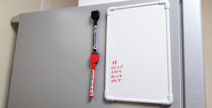 サンキュ!STYLEライターおおつかはじめさんは、冷蔵庫横のホワイトボードに購入するものや、ストックがなくなったものをメモするくせをつけているようです。このメモのおかげで、二重買いや買い忘れが激減したのだとか。家族にも協力してもらい、なくなったものをメモしてもらうようにするとより効果的かもしれませんね。