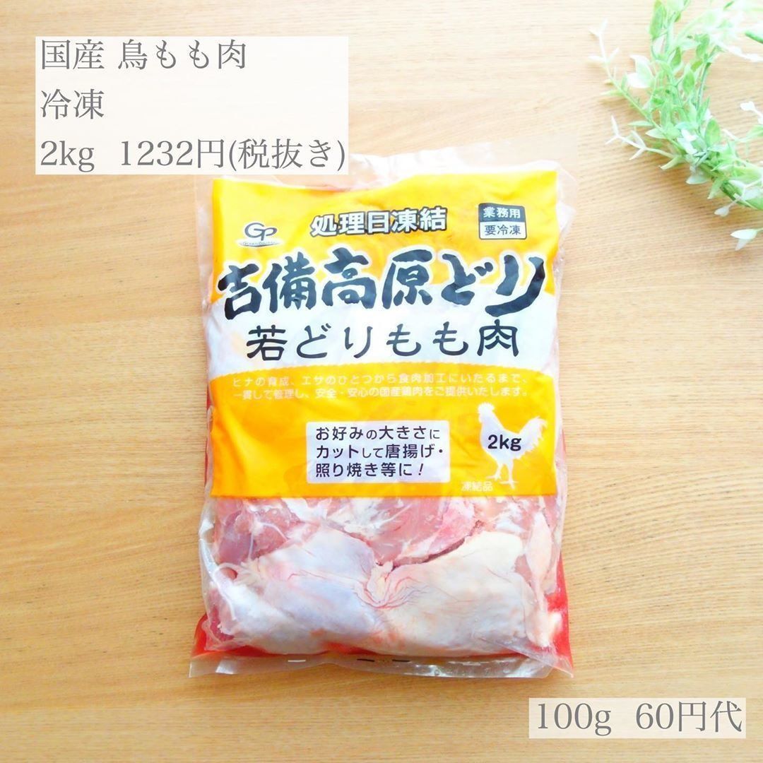 常備菜づくりなどで日々の食費節約を意識しているmorita.nさんが、業務スーパーで初購入したのがこちら。国産の鶏もも肉がなんと100g60円台とうれしいお手頃価格です。解凍に一晩かかり、スジの処理が必要だったようですが、このお値段で国産のもも肉が手に入るのはうれしいですね!