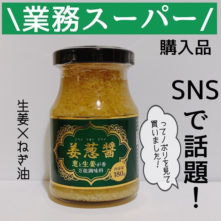 3人の男の子を育てながら、節約を意識している_nana_homeさんがオススメする業務スーパーアイテムがこちら。SNSでも話題の万能調味料「姜葱醤 (ジャンツォンジャン)」です。そのままでも加熱してもOKでアレンジ自由自在!醤油と合わせてご飯に乗せたり、ぎょうざのタレにしたりと、幅広くつかえるようです。