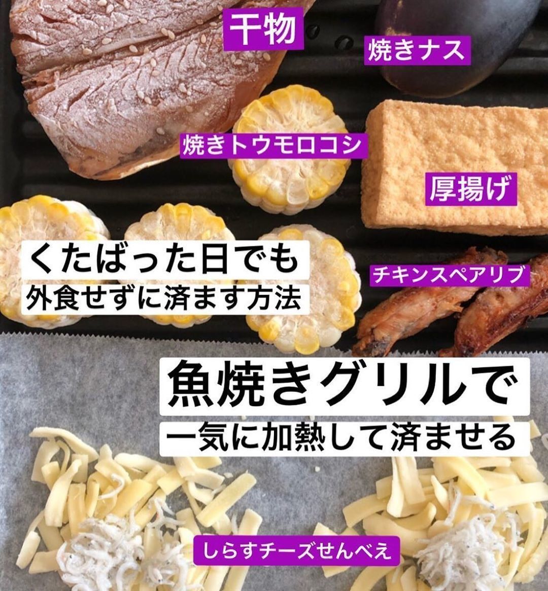 食費節約と健康のために外食を控えているjapanese_kitchenさん。ご飯をつくる気力のない日は、事前に冷凍保存しておいた干物や下処理したトウモロコシ、チキンスペアリブなどをご飯のメニューにしています。魚焼きグリルに並べて解凍を待つだけと、調理法も簡単。栄養もしっかり取れるので、一石二鳥ですね。
