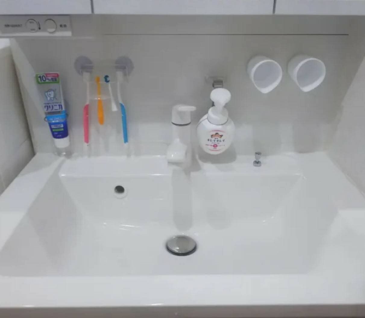 毎日使う洗面グッズは、ワンアクションで取って戻せるようにしています。この収納方法をずっとやっていますが、リバウンドしないのでオススメです。