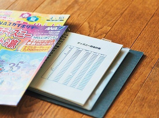 東京ディズニーリゾートへの家族旅行費は、2年かけて毎月積み立て。積立額を表にして、〝見える化〞することでやる気を高めました。旅行のときはケチケチせず、存分に使います。(Sさん)