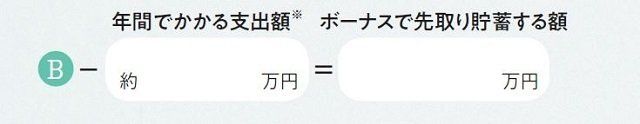 ※ボーナスがない人は、年間の支出額を12で割って、C の予算から積み立てして備えましょう。