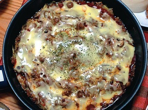 一皿でたんぱく質も野菜もとれるメインのバリエがいっぱい! 「安い食材でも全部入りにすればボリュームたっぷりで家族も大満足」。「ひき肉ともりもり野菜のチーズ焼き」は鍋で材料を炒めて調味し、チーズをON。簡単!(中島さん)