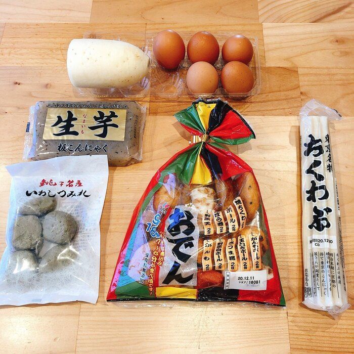 5人家族で食費月2万円台のサンキュ!STYLEライターさくのんさんは、業務スーパーの食材だけでお得なおでんをつくったようです。オススメは、9種類18品入りで158円の練りものセット!ほかにもこんにゃく(45円)、ちくわぶ(78円)などを活用して、なんと5人分463円でおでんが完成したのだとか。