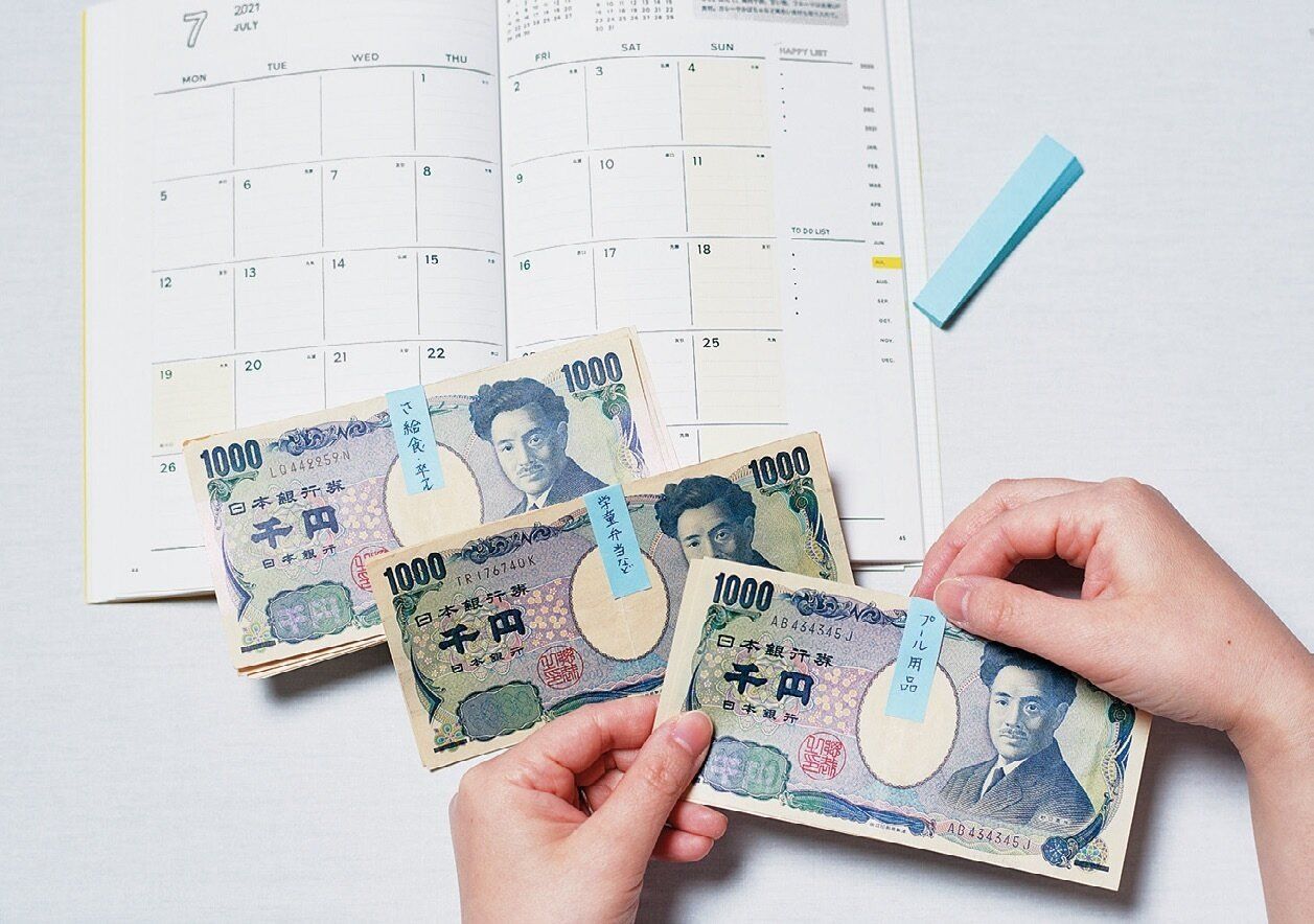 最初にすべての予算を現金で振り分けるのがポイント。お金の流れがひと目でわかり、イヤでも頭に入ります!
