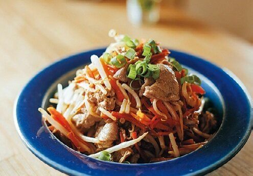 冷蔵庫の野菜と肉を適当に組み合わせて炒め、焼き肉のたれかめんつゆで味つけ。18時まで働く私の鉄板メニュー。