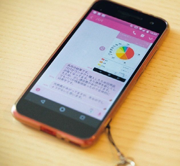 帰宅の遅い夫には、家計簿アプリの集計結果を月に1回LINEで送信。夫が都合のいいときに確認してもらいます。共有することで貯蓄目標に向かって一丸となれ、夫婦仲も良好に。